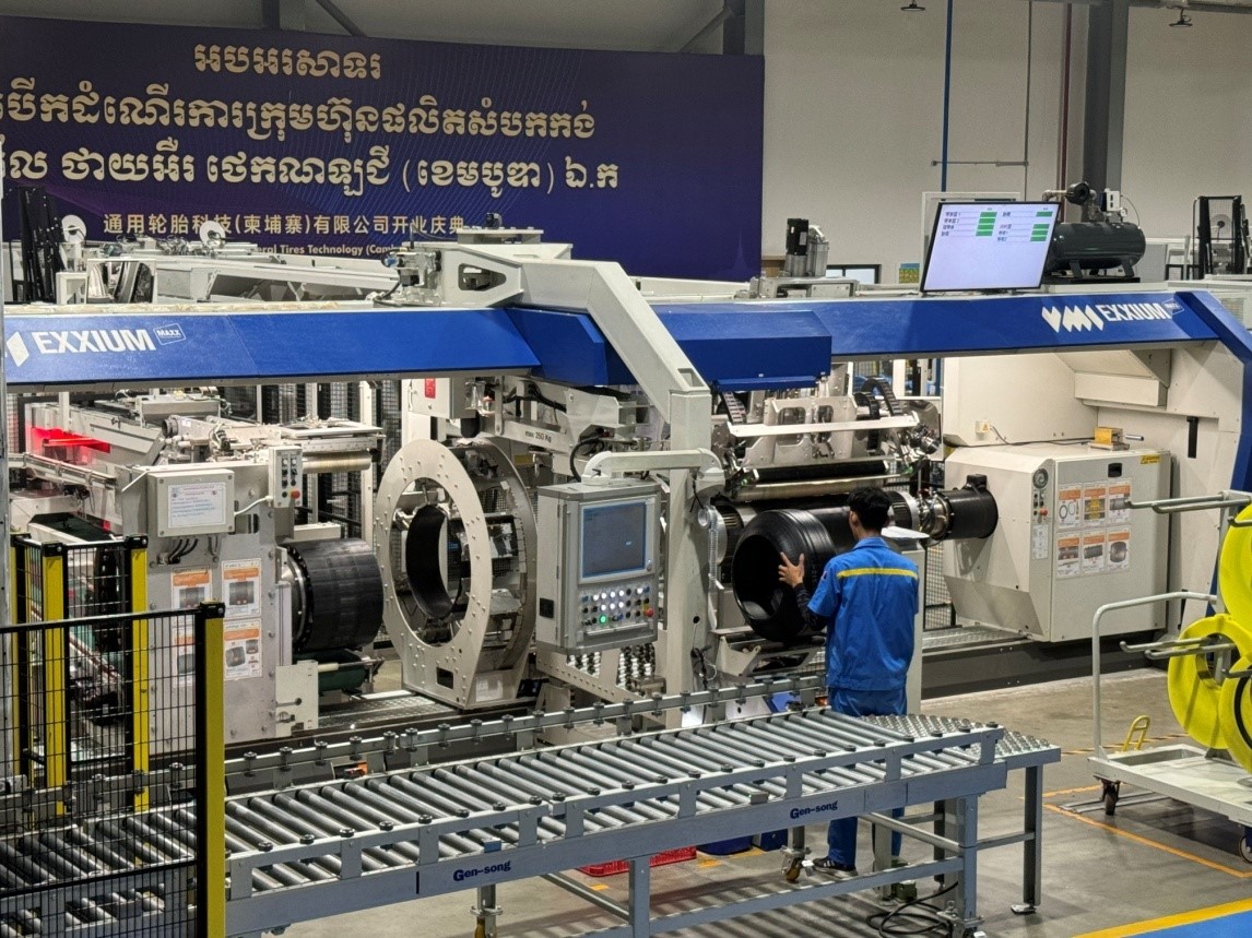 走進(jìn)通用輪胎科技(柬埔寨)有限公司,目之所及都是智能化的生產(chǎn)設(shè)備,工廠內(nèi)建有13個(gè)立體智能倉(cāng)庫(kù),91個(gè)機(jī)器人。令人驚嘆的是,從半部件到一條20寸的輪胎成型,僅需33秒的時(shí)間就完成了。該工廠自2023年5月正式開(kāi)業(yè)以來(lái),以打造智能化、自動(dòng)化、信息化的現(xiàn)代化工廠為目標(biāo),推進(jìn)智能制造和精益制造,僅一年時(shí)間,一期項(xiàng)目就實(shí)現(xiàn)了全面達(dá)產(chǎn)。如今,正在加快推進(jìn)二期項(xiàng)目建設(shè),一期、二期全部達(dá)產(chǎn)后,將具備年產(chǎn)850萬(wàn)條半鋼子午胎和165萬(wàn)條全鋼子午胎的生產(chǎn)能力。